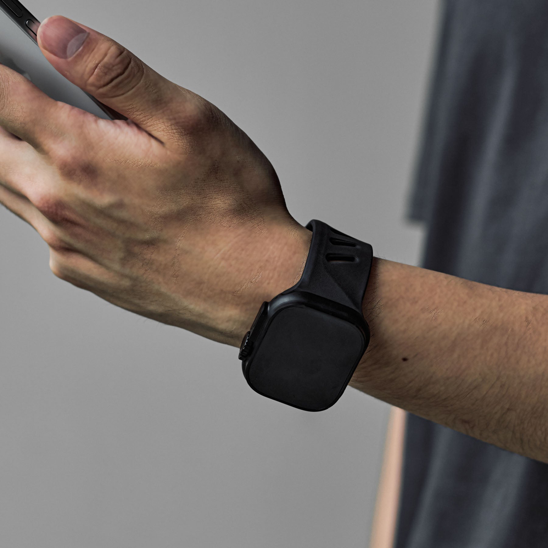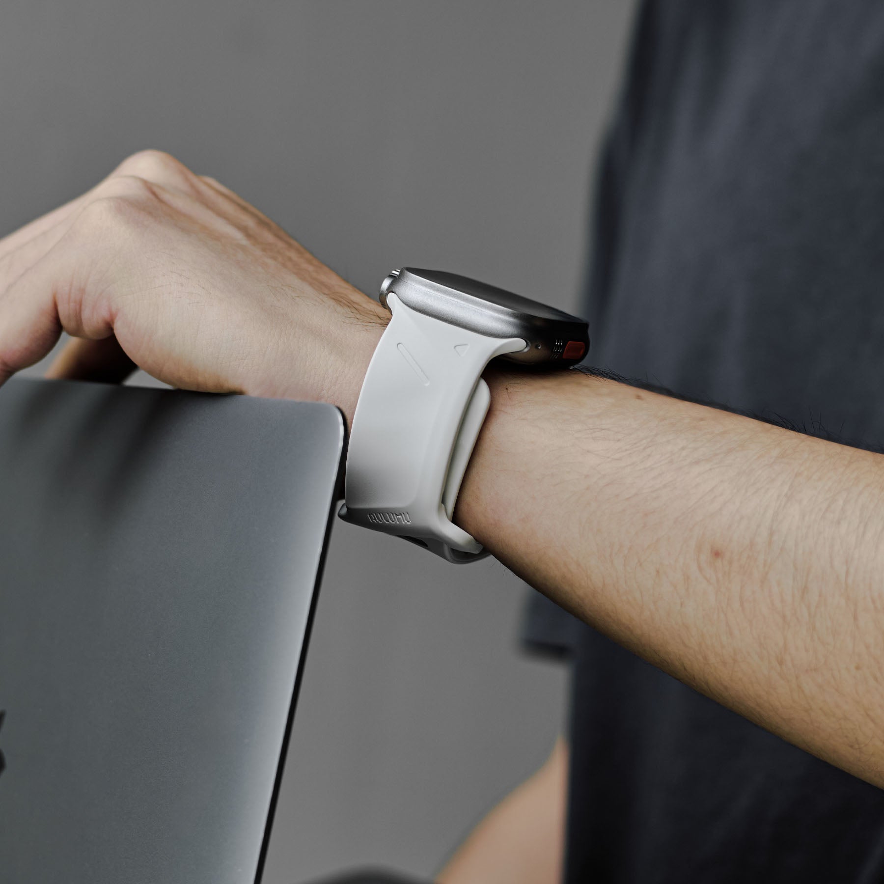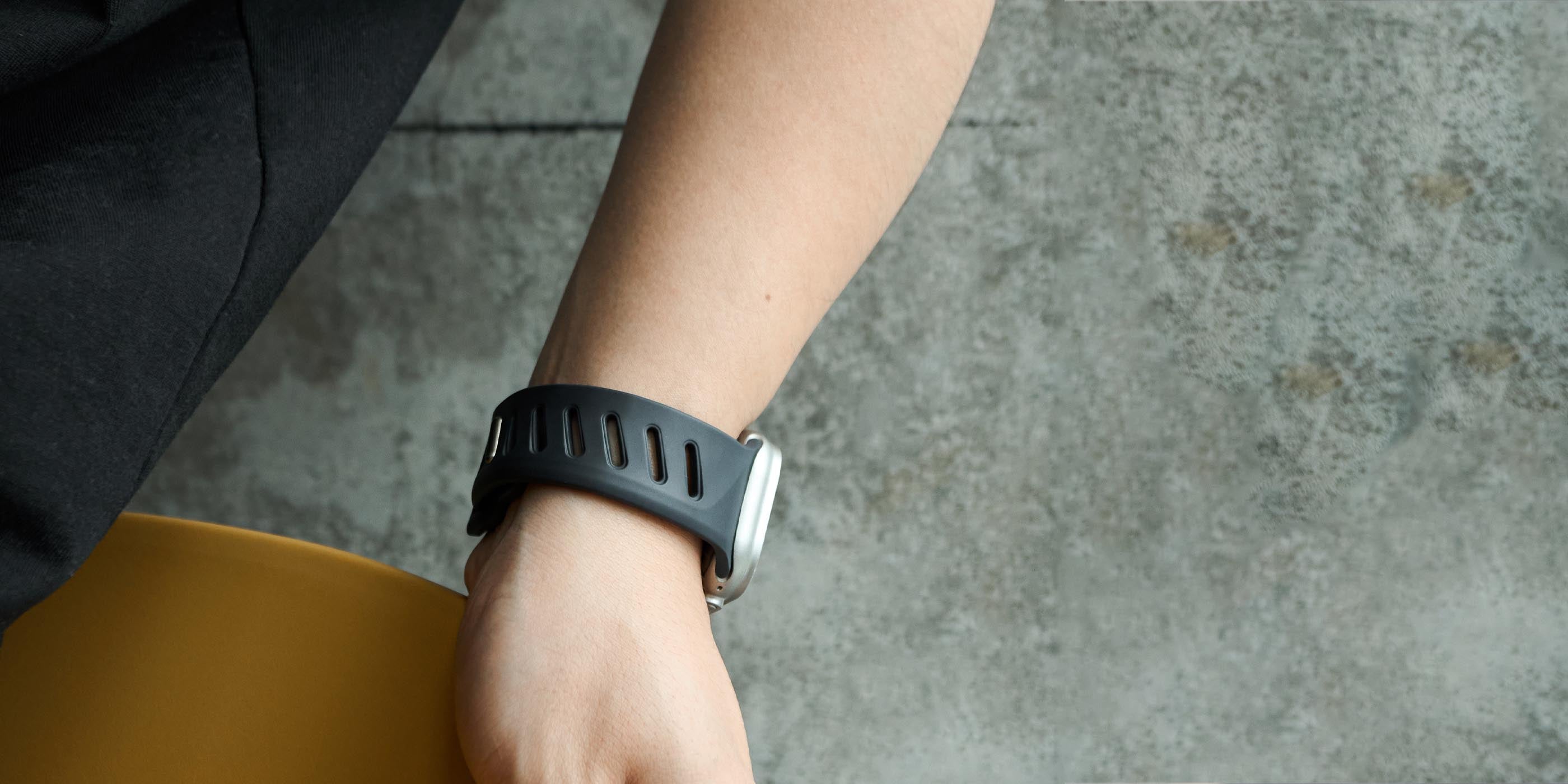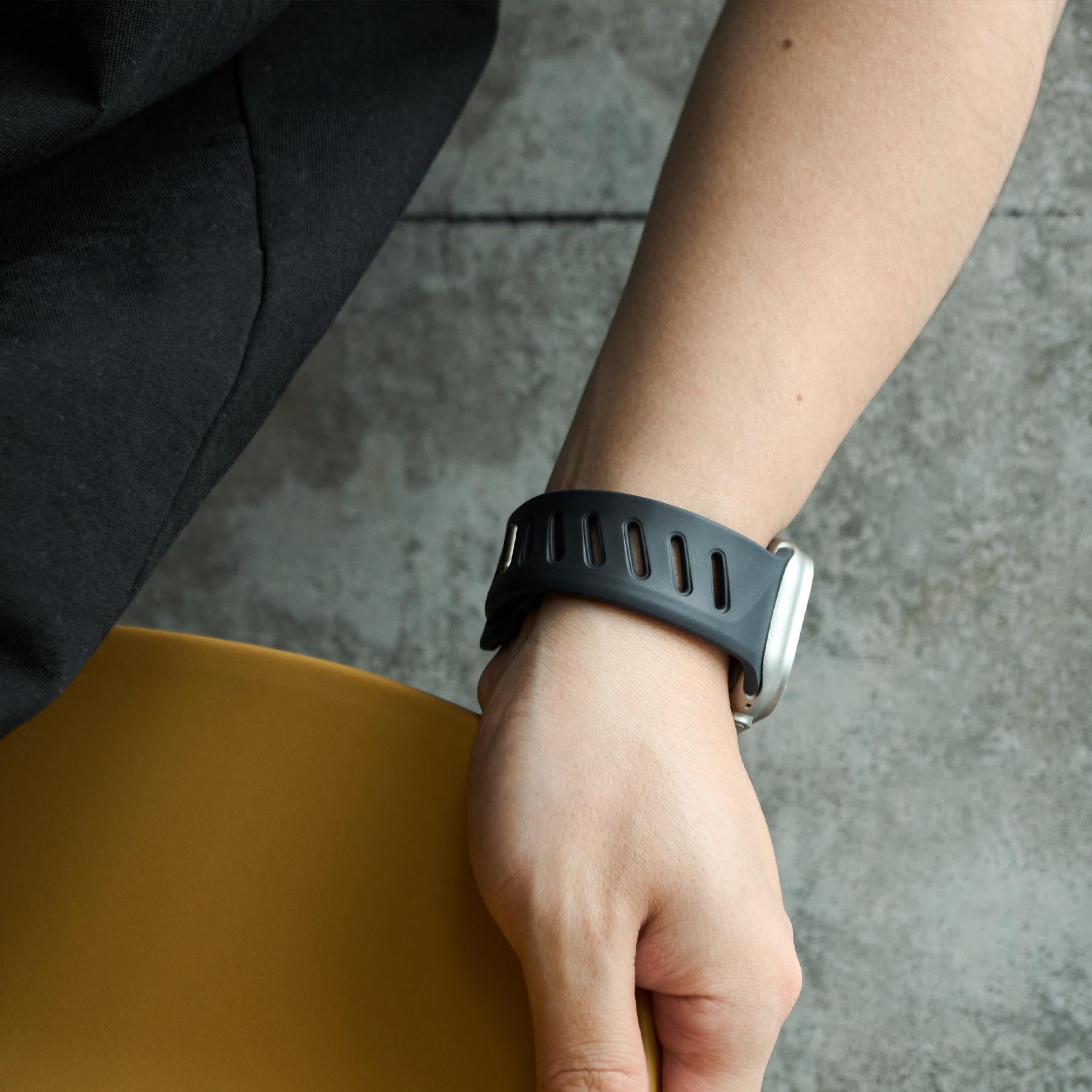 aulumu's second watch band, A02 Offbeat Sport Band, applied new design and material, but still same urban tech style with future aesthetic. This new band made from a high-performance fluoroelastomer, which is durable and strong, yet soft to wear. One-of-a-kind unsymmetrical adjustable holes make it unique to look. Channels design in the bottom of the band offer remarkable breathability and flexibility, ensures all-day comfort. For the closure, it applied an aluminum pin-and-tuck mechanism guarantees secure closure and gives the pin a fresh matte finish.