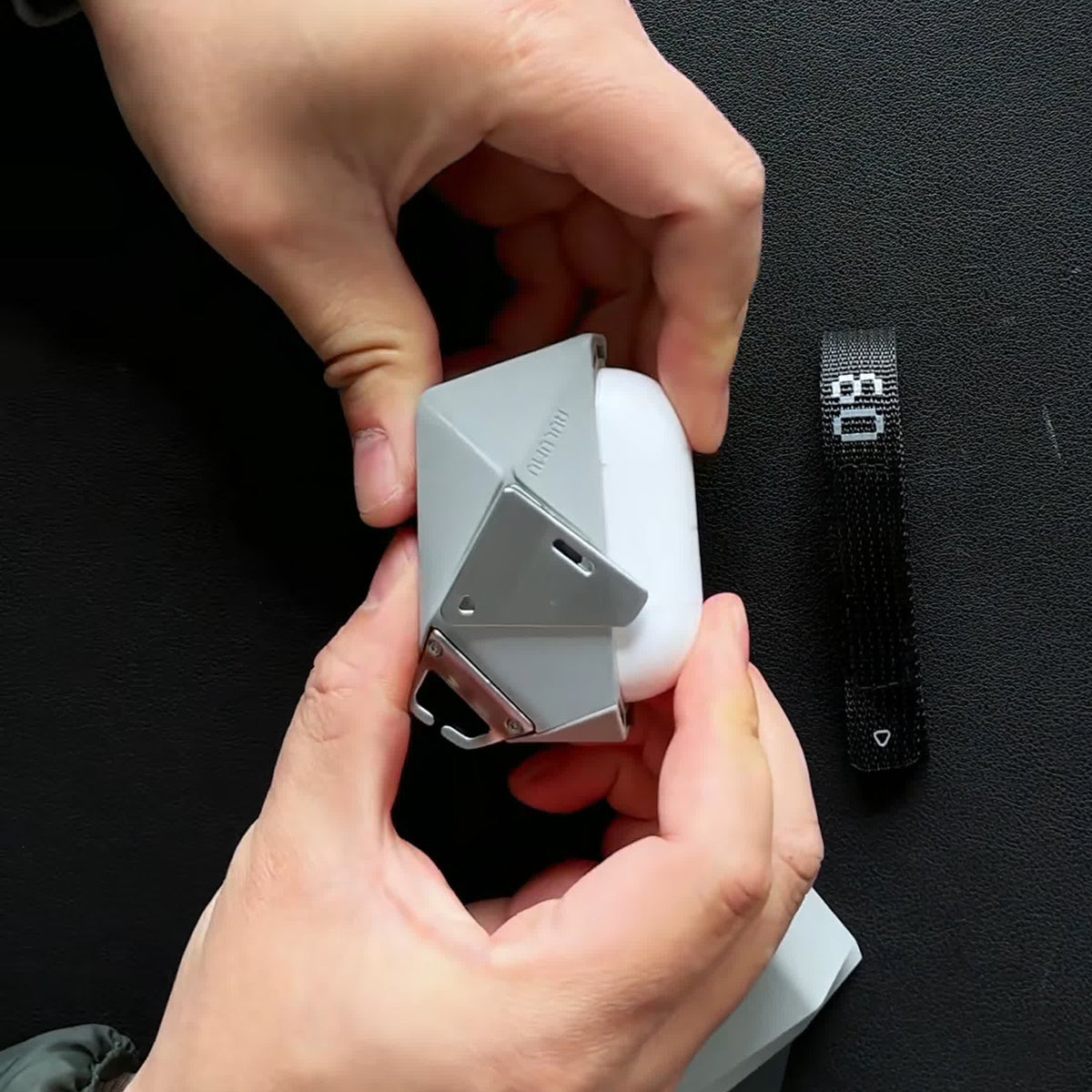 A09 Geometric Case for AirPods Pro Series | Lock & Lanyard | Gray