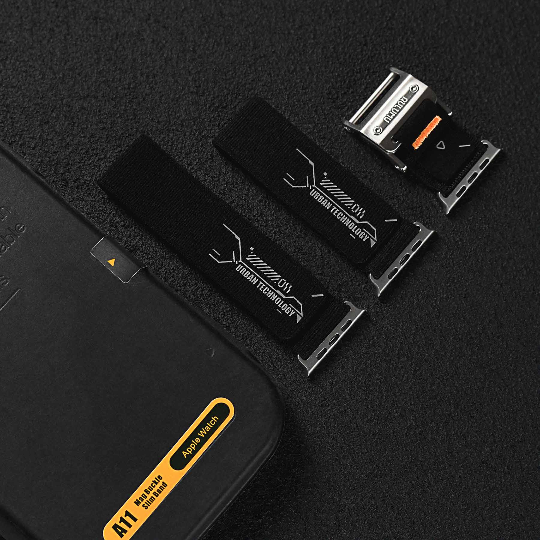 A11 Mag Buckle Slim Band, designed to give your Apple Watch a new look, timeless yet modern. Also comfortable for all-day wear, 2.5cm broad double-layer soft nylon that's lightweight, breathable, and rugged.