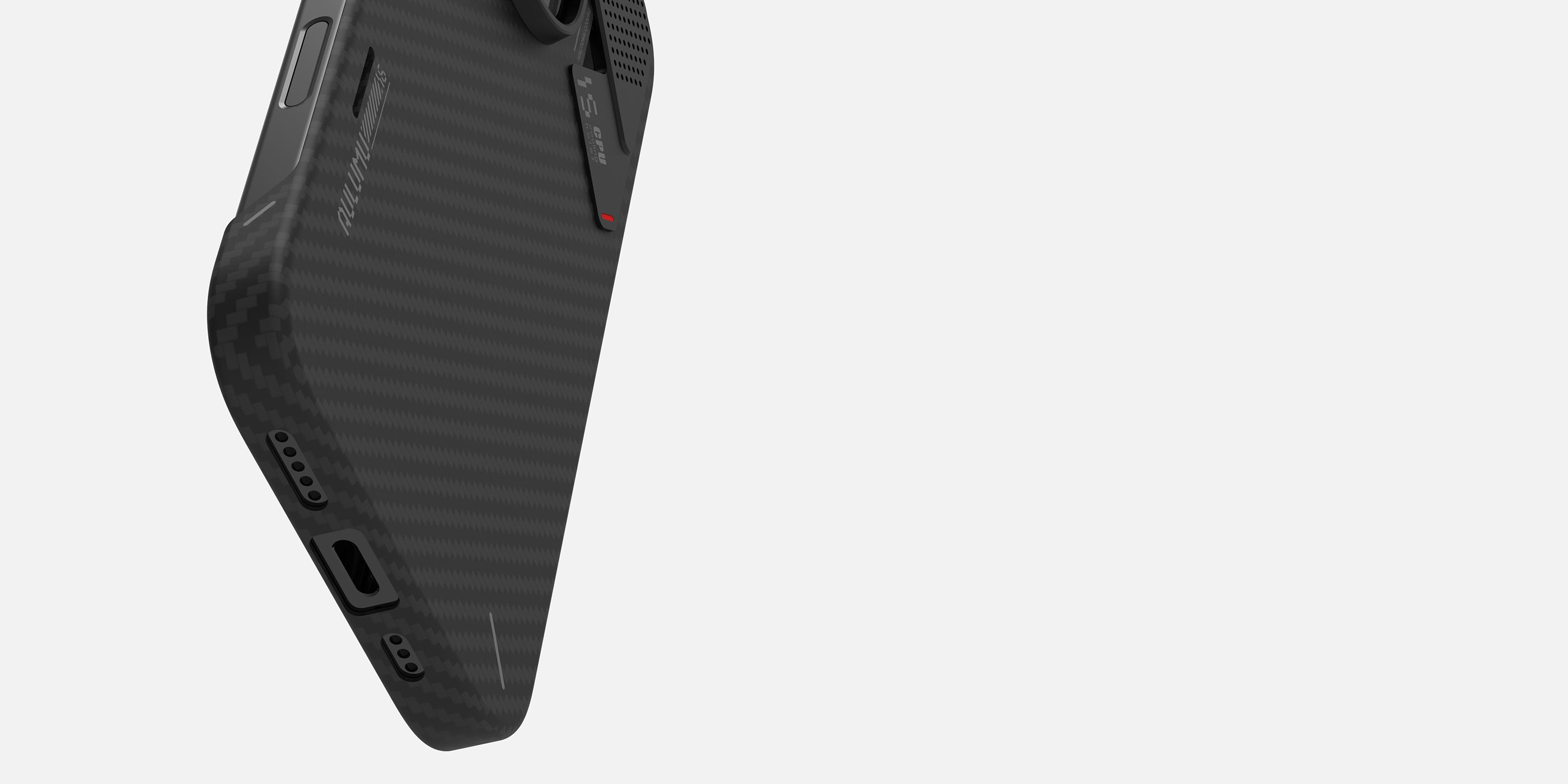 Made from durable aramid fiber, scratch and impact resistant. Also incredibly lightweight—just 25g for iPhone 15 Pro, 30g for iPhone 15 Pro Max — measuring only 0.6mm on the frame and 1.2mm on the cover.