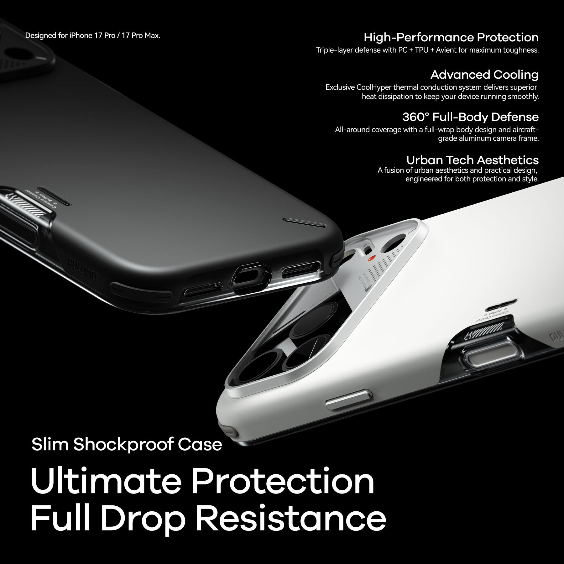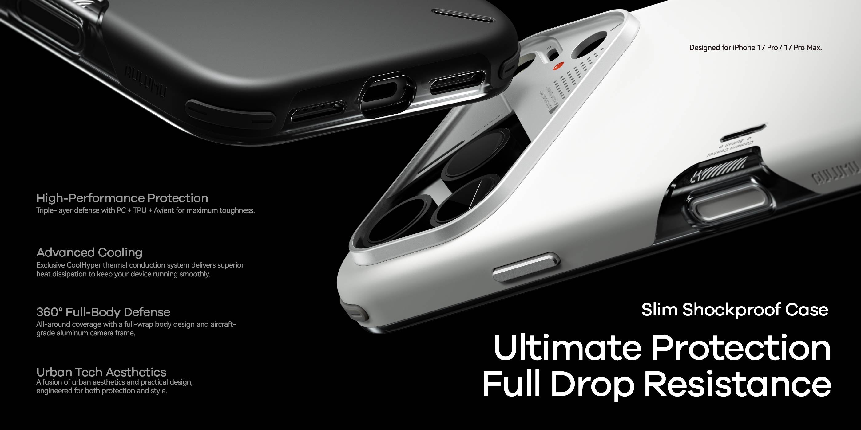 Introducing aulumu’s Shockproof Case — slim, sleek, and ultra-protective. Raised Avient corners deliver 4× shock absorption beyond MIL-STD-810G, so your iPhone bounces back from every fall.