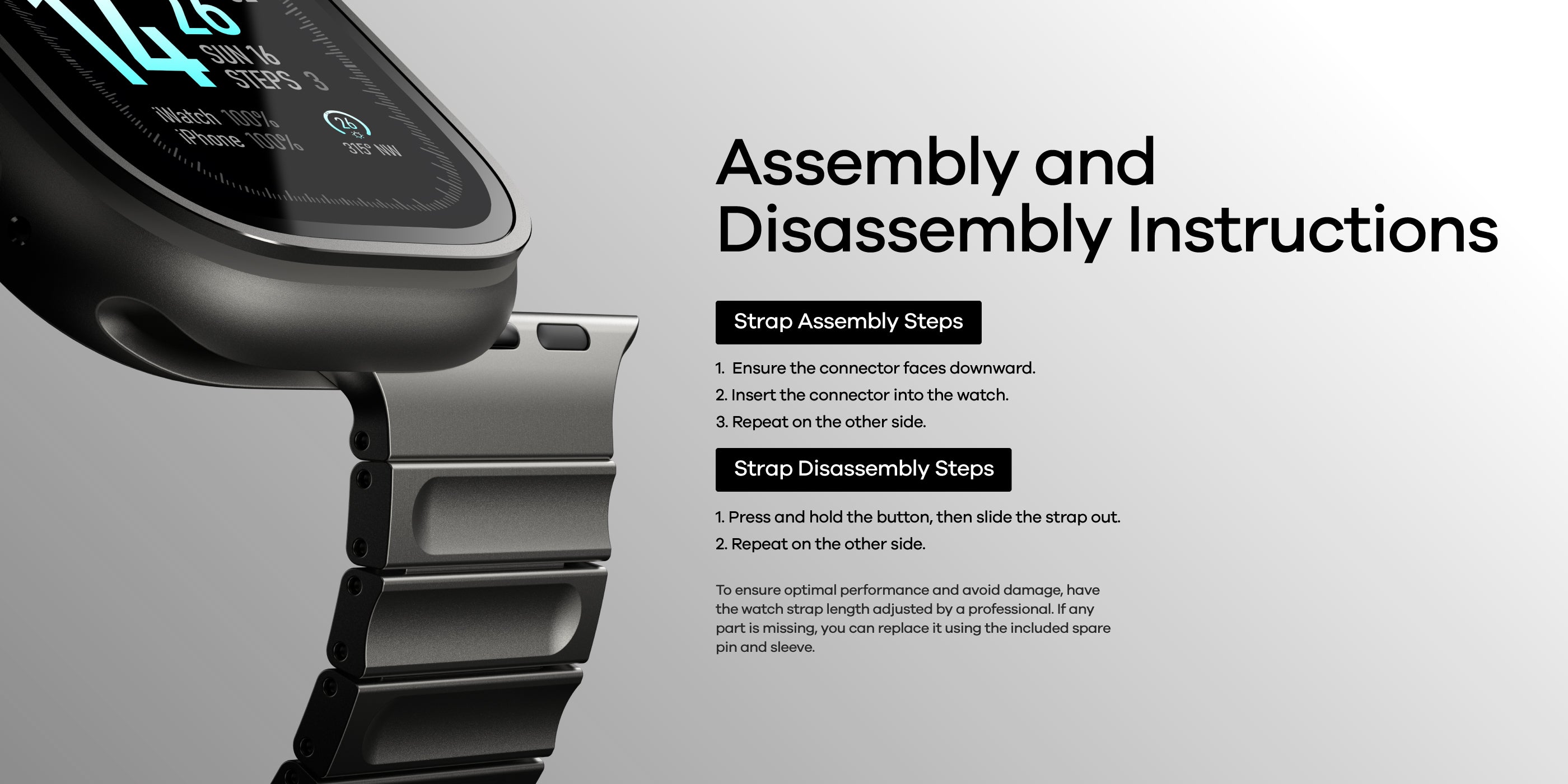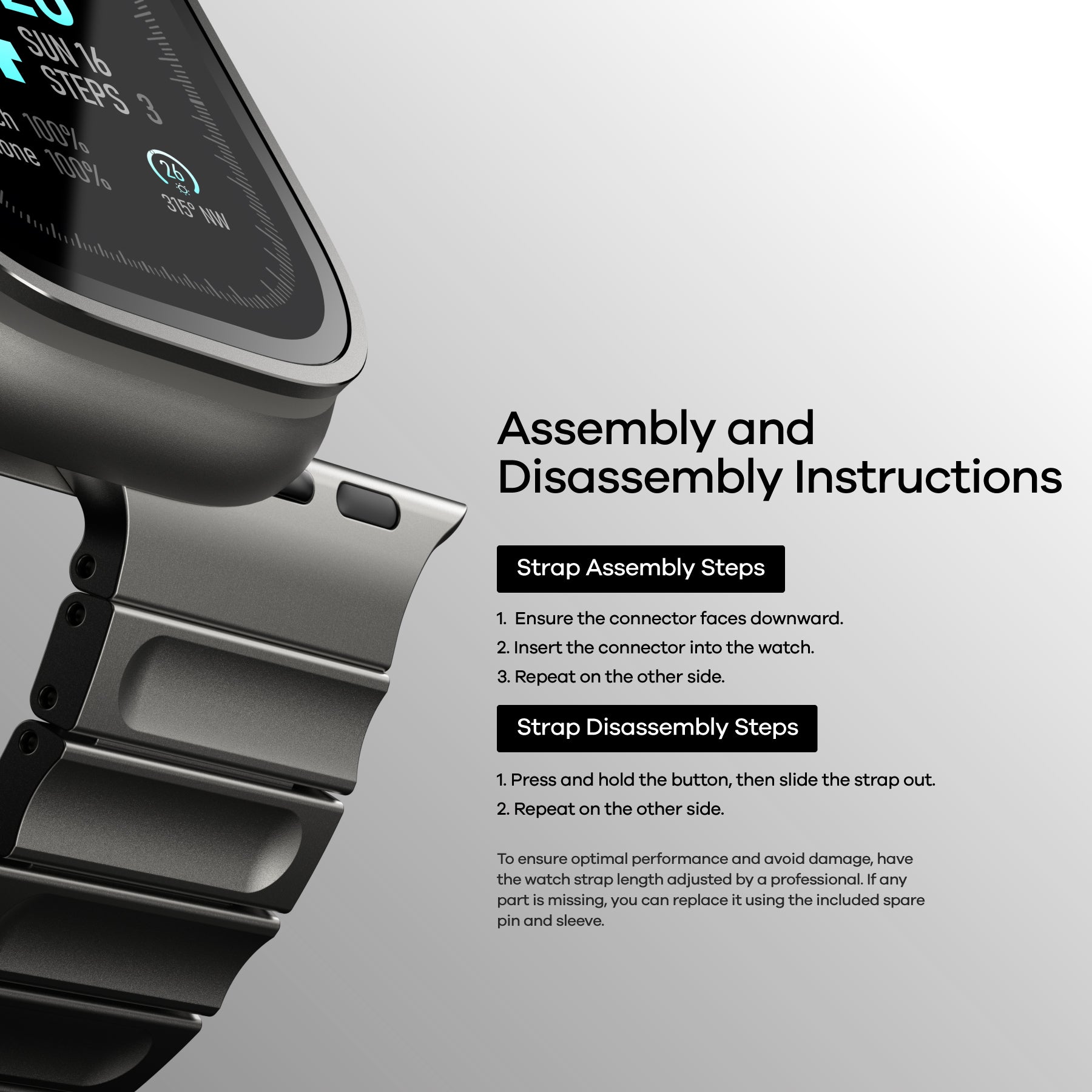 To ensure optimal performance and avoid damage, have the watch strap length adjusted by a professional.