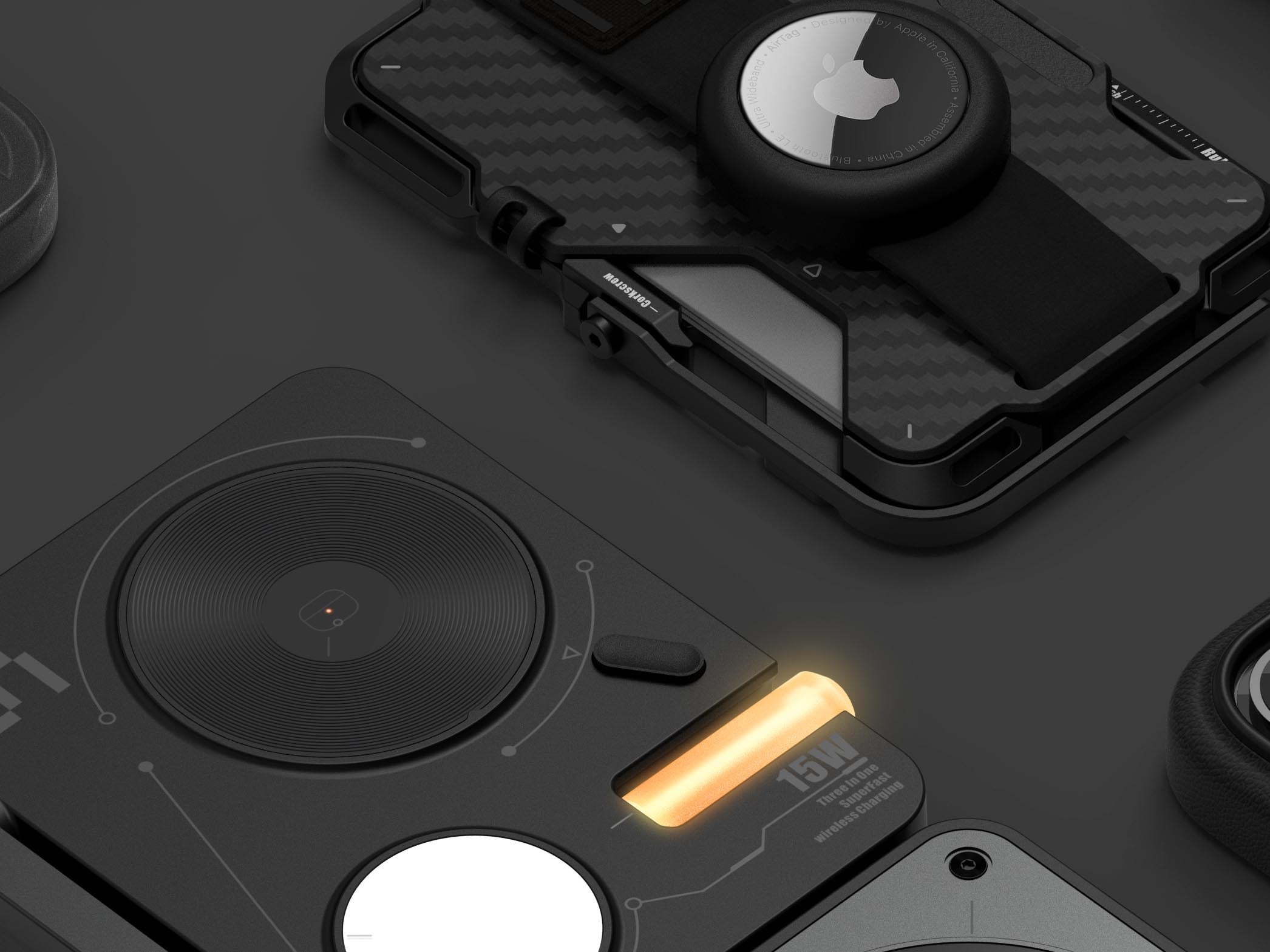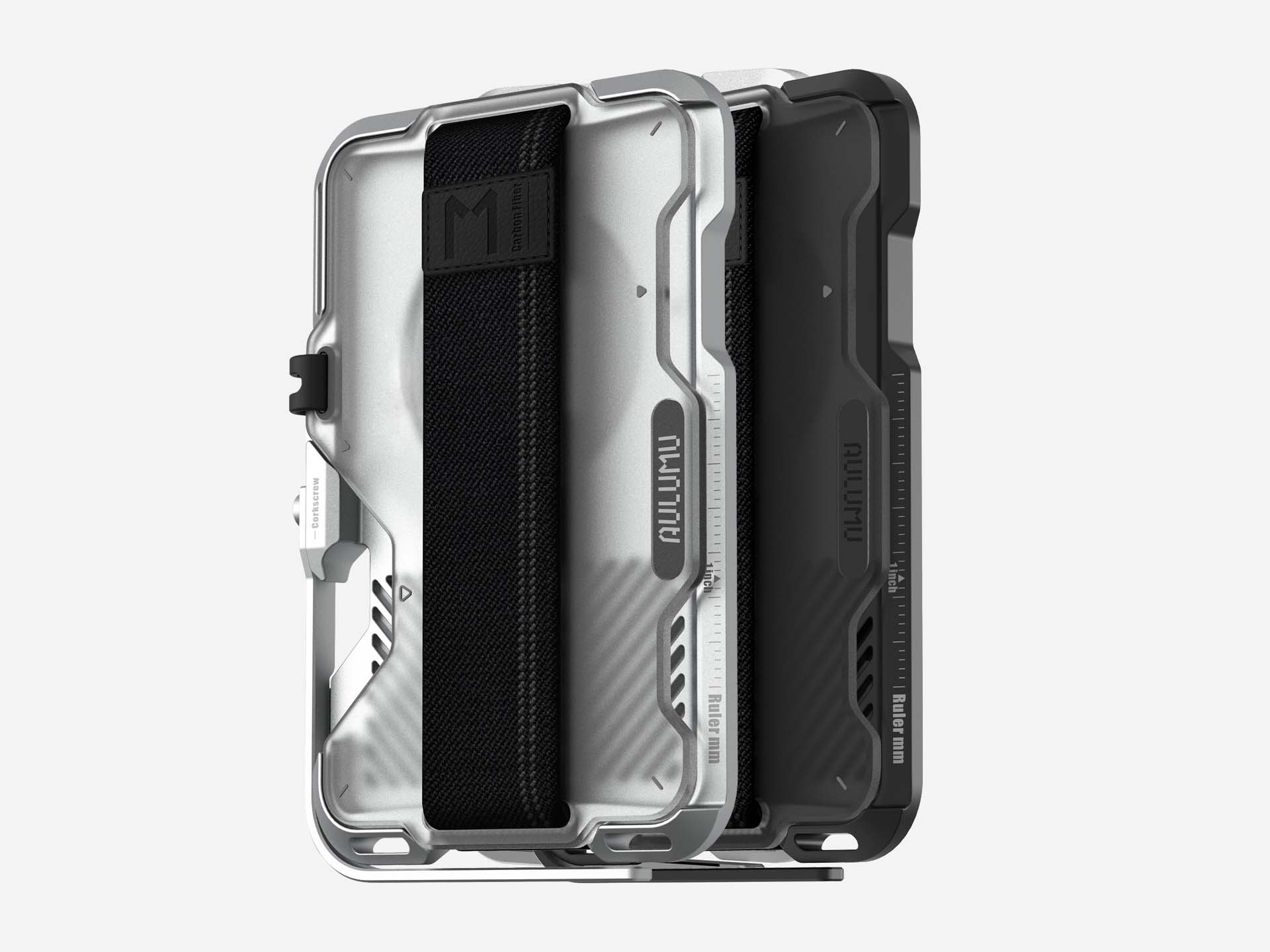 Slim carbon fiber wallet keeps your essentials secure with RFID protection, kickstand, and AirTag holder. Paired with the G05 Air Stand offering a magnetic phone stand, slim grip, hidden cutter, stress-relief spinner, and precision protractor—this bundle is built for everyday efficiency with a sleek, modern edge.