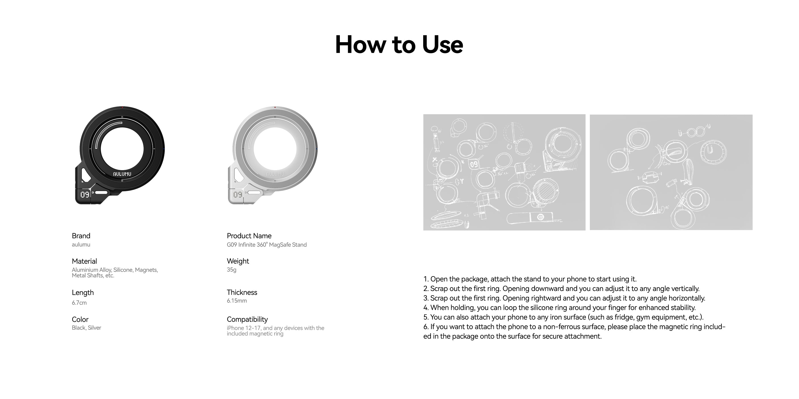 G09 Infinite 360° MagSafe Stand was born from a simple idea — your phone shouldn’t be limited by where you place it. We wanted a stand that moves like you do, not one that forces you to adjust. So we combined a world-first 3-axis 360° rotation, magnetic freedom, and precision damping to create a stand that stops exactly where you want, whenever you want. Built with lightweight aluminum and crafted for everyday life — from work to kitchen to workout — it isn’t just a tool, but an extension of how you live, create and move.