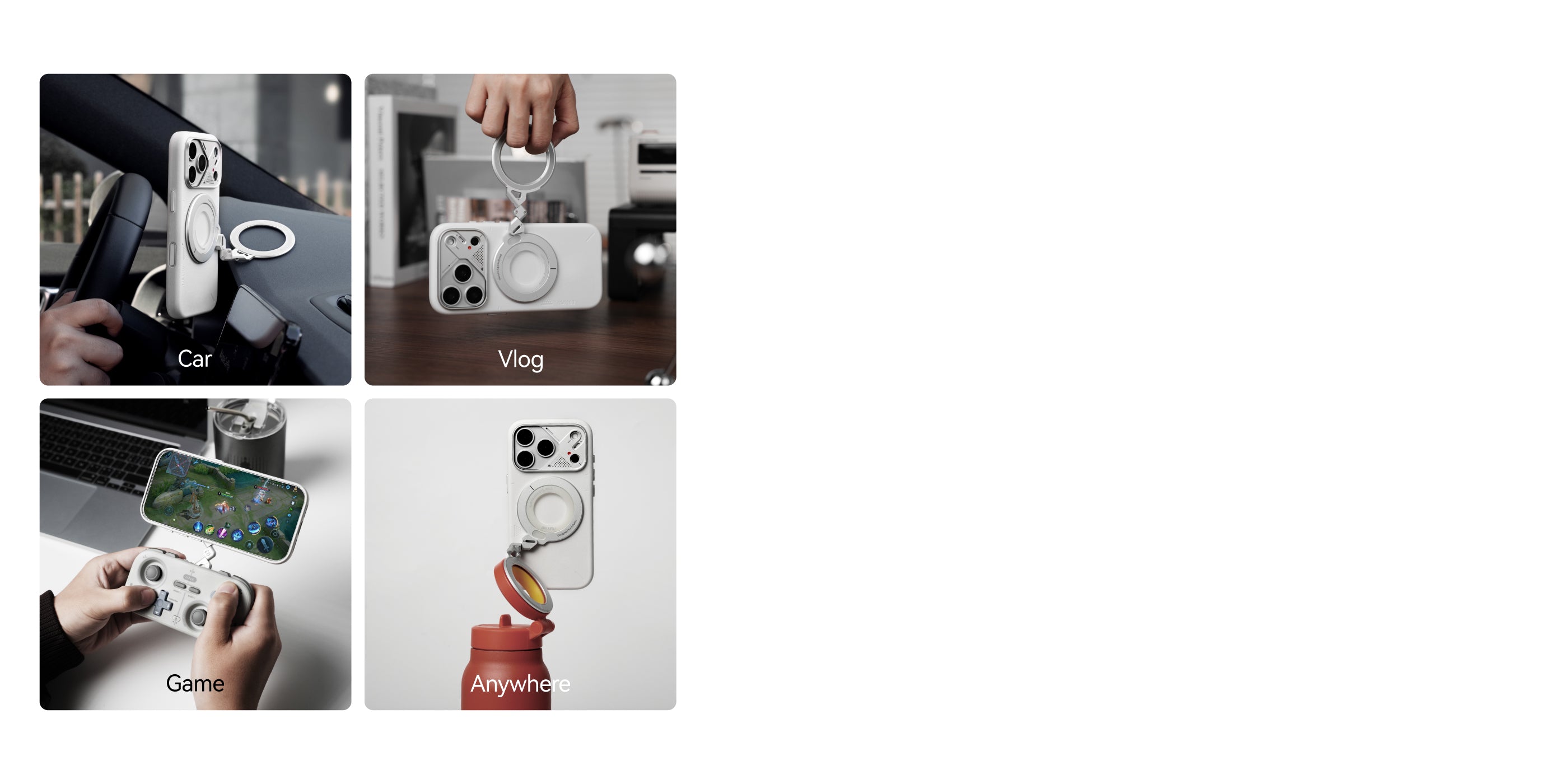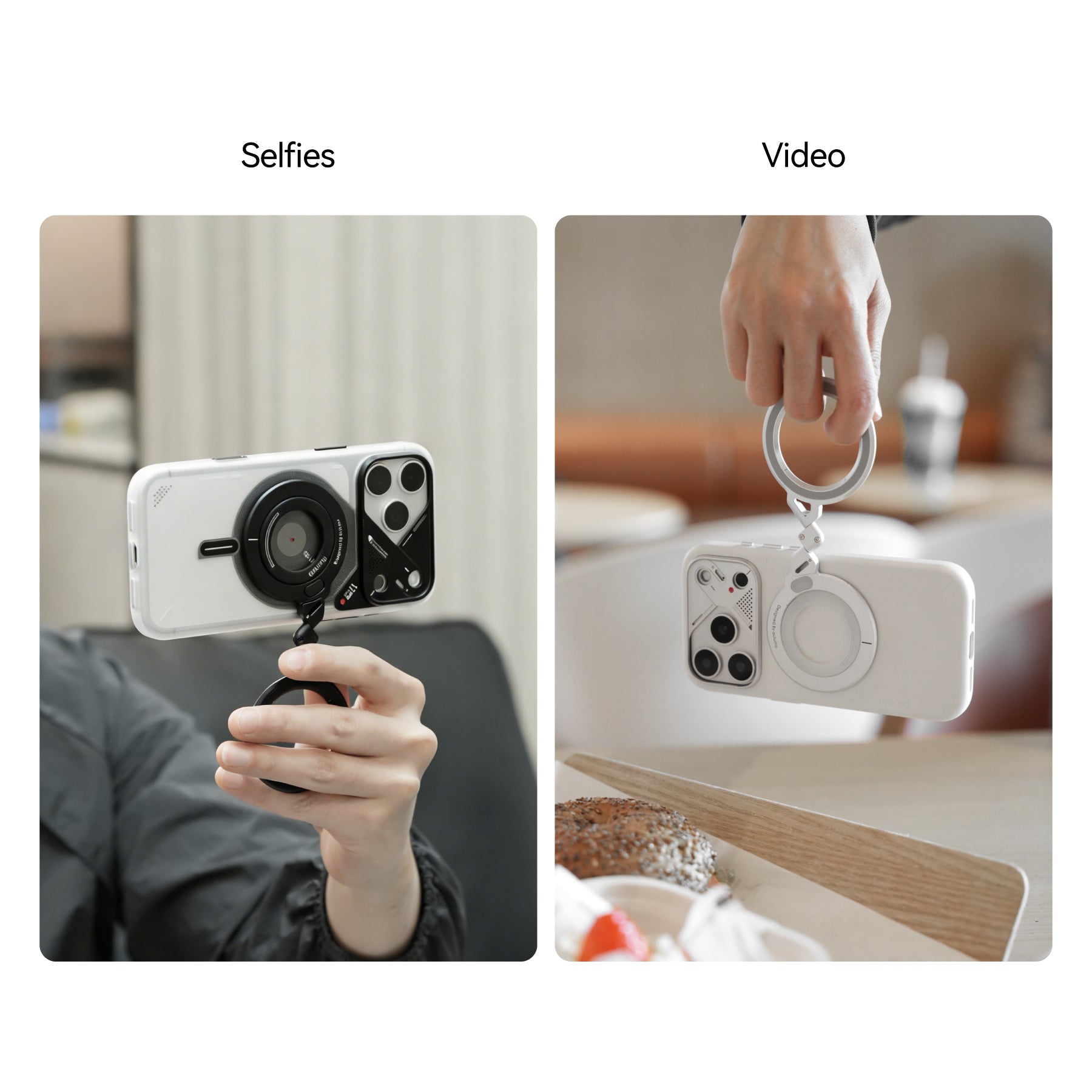 An oversized ring that doubles as a grip and a mini handle—ready for selfies and videos.