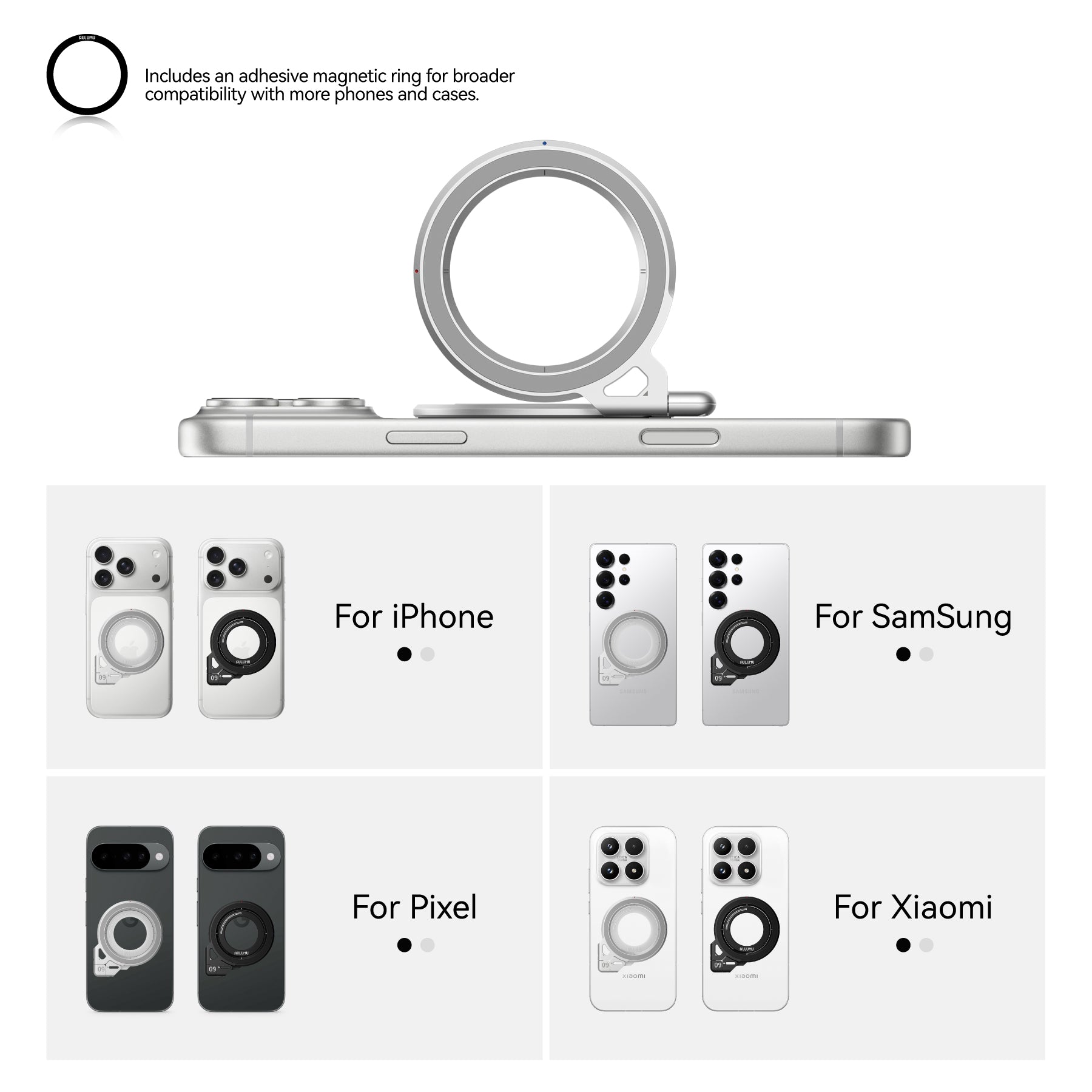 * If you’re not using the included adhesive metal ring, a MagSafe-compatible phone case is required for magnetic attachment.