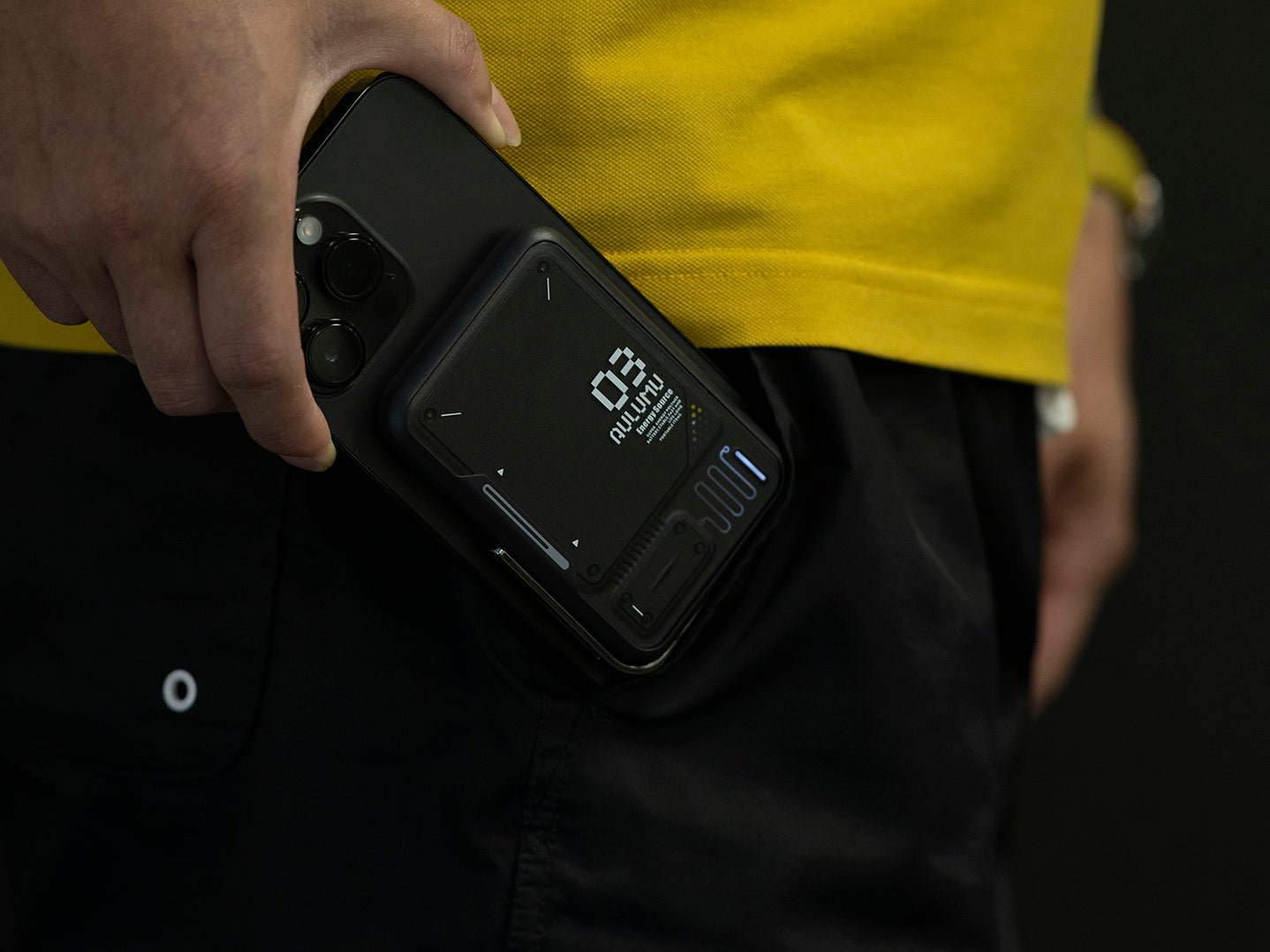 smallest & lightest magnetic wireless power bank with foldable kickstand.