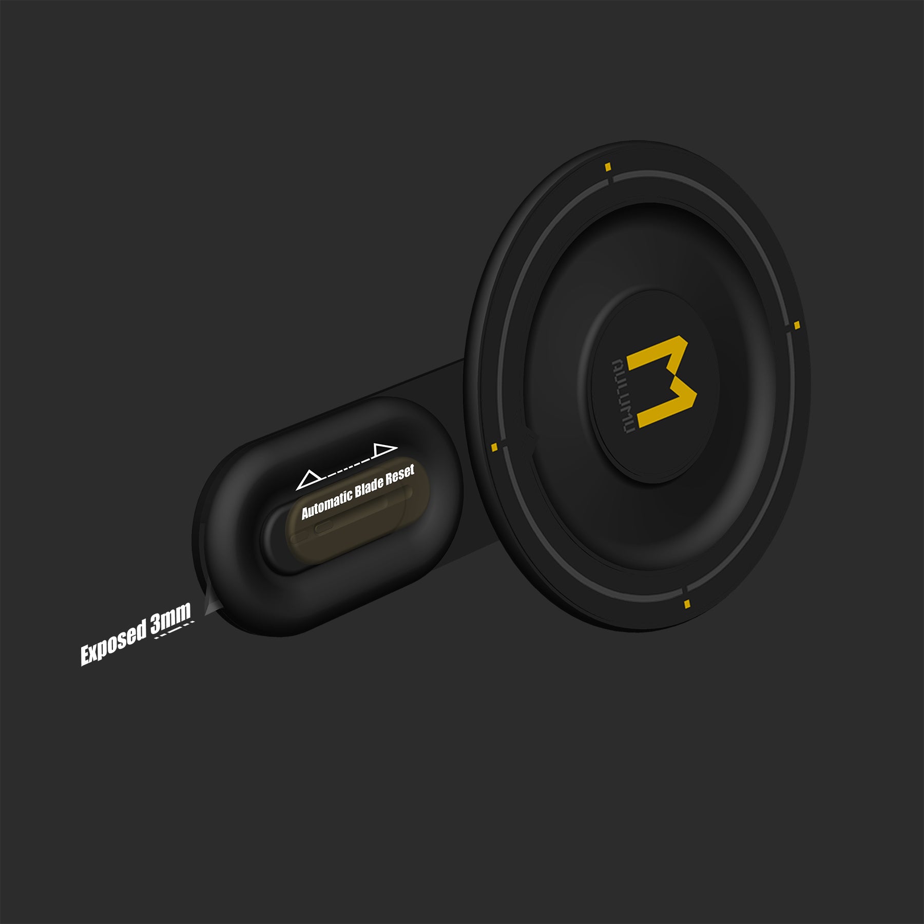Amazing design to combine box cutter with magnetic phone kickstand. When there is need to unpack box, just simply slide off the stand. No need to look everywhere. And attach it back anytime with the built-in magnet. The built-in ceramic knife is hidden, you need to push the button with some force to show it. And it is auto-retract. Safe to use. But we still suggest you don't let children play with it.